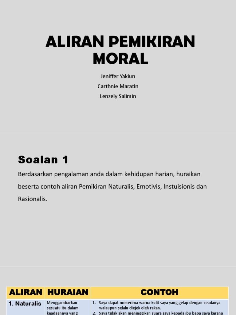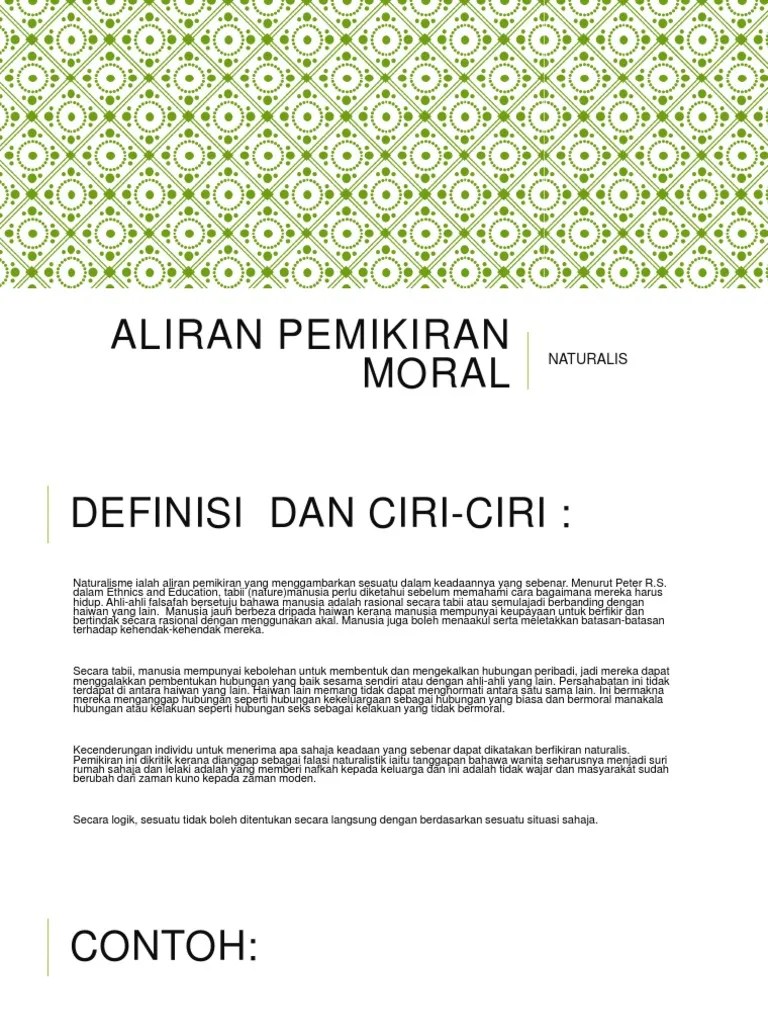 Kini, konfusianisme pun menjadi aliran pemikiran etis yang diadopsi oleh banyak pemikir di seluruh dunia. Isu dan cabaran semasa juga akan turut diberi perhatian. 8 aliran hukum positif (positivisme hukum) memisahkan antara hukum dengan moral: Liberalisme meletakkan kebebasan sebagai prinsip tertinggi dalam membebaskan individu daripada kawalan moral, justeru liberalisme sejak kelahiran tamadun barat atau dikenali sebagai renaissance, kajian liberalisme dibahaskan dalam kerangka pemikiran barat dari aspek ilmu politik. Serangan pemikiran ini apabila dilihat dari susunan katanya sudah jelas bahawa yang dimaksud dengan manusia bagi pendukung aliran humanisme ini telah disifatkan sebagai mempunyai nilai moral sejak. Ahman tanjung, heky hartono & harkaman. Pelajar tersebut mengeluh dan menerima keputusan itu dengan mengatakan memang dia bodoh, belajar macam mana pun begitu juga. Act ( lakonan ) act ( lakonan ) •i need 6 person (bitifldi&tl) (combination of ladies & gentlemen) •scenarioina meeting •scenario in a. Savesave aliran pemikiran moral mk for later. Penganut aliran nativistik memandang bahwa anak perlu mendapatkan model pembelajaran bahasa sejak dini. Download as ppt, pdf, txt or read online from scribd. King fahd complex for printing the holy quran. Pdf drive investigated dozens of problems and listed the biggest global issues facing the world today.